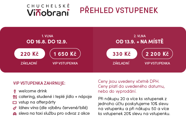 V ceně každé vstupenky je obsažena i SKLENIČKA NA VÍNO o objemu 450 ml, kterou každý návštěvník dostane při vstupu ZDARMA.